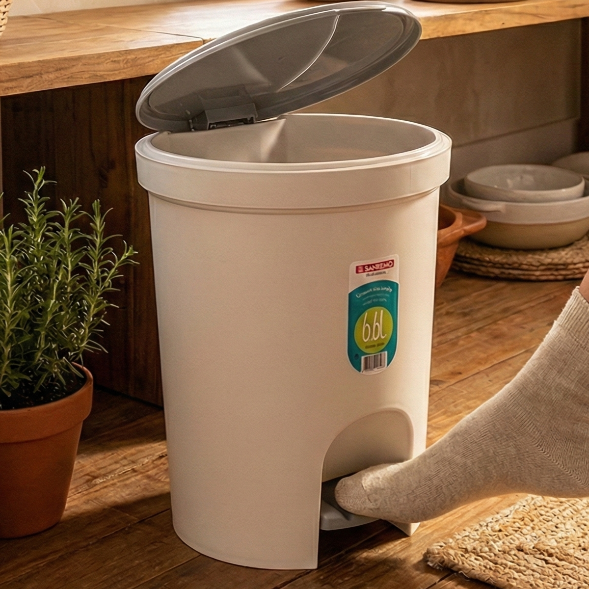 Fabricada pela Sanremo, A Lixeira com Pedal 6.6L Sanremo é feita de plástico polipropileno de alta qualidade e resistência. Seu design conta com uma alça externa que facilita o transporte e o descarte dos resíduos. Além disso, sua superfície lisa torna a limpeza extremamente fácil, bastando água e sabão neutro para deixá-la nova em folha.