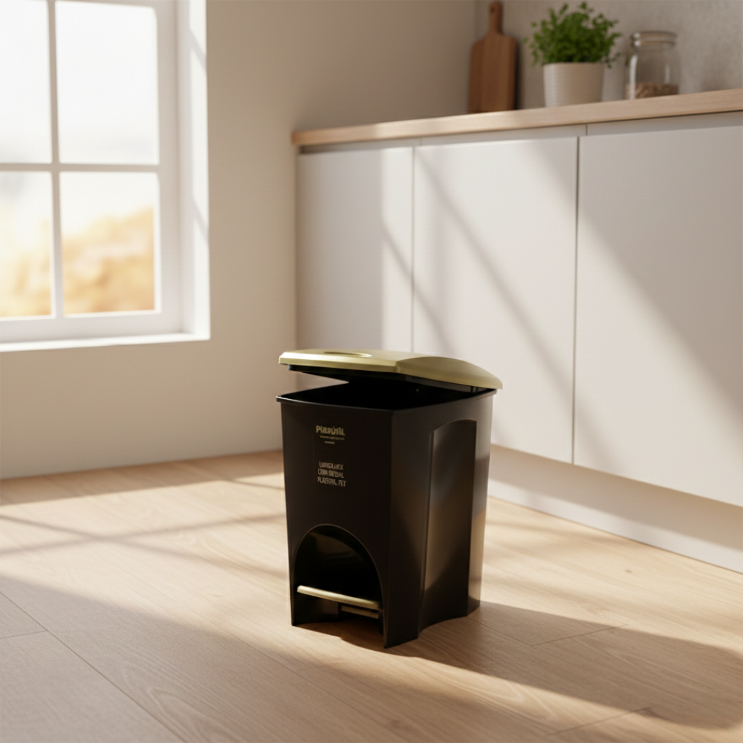 A lixeira com pedal 7 litros da linha Ecoblack é a escolha perfeita para quem busca aliar funcionalidade, higiene e consciência ambiental em sua residência hoje. Desenvolvida pela Plasutil, esta lixeira é fabricada com material reciclado de alta qualidade, transformando o descarte em uma solução sustentável e elegante para o seu dia a dia em 2025.