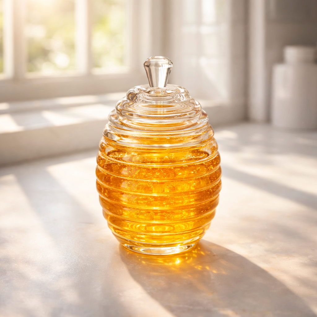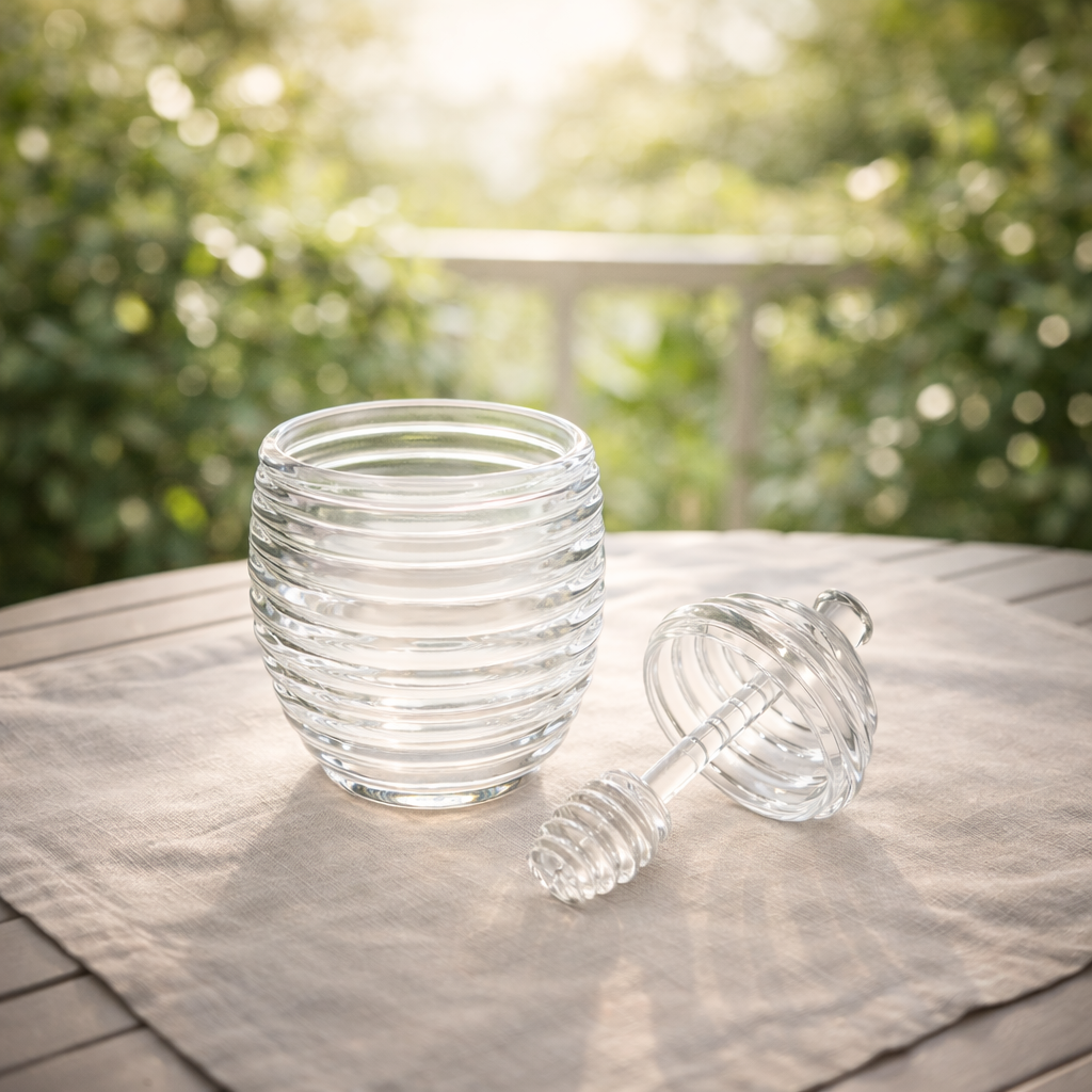 A Meleira Colmeia Transparente em Acrílico é ideal para armazenar e servir mel de forma prática, higiênica e elegante. Fabricada em acrílico resistente e transparente, permite visualizar o conteúdo e controlar a quantidade com facilidade. Seu design inspirado em colmeia agrega charme à mesa de café da manhã ou chá da tarde. Acompanha tampa e pegador dosador que evitam desperdícios e mantêm o mel sempre protegido. Perfeita para uso doméstico ou em estabelecimentos como cafeterias e padarias.