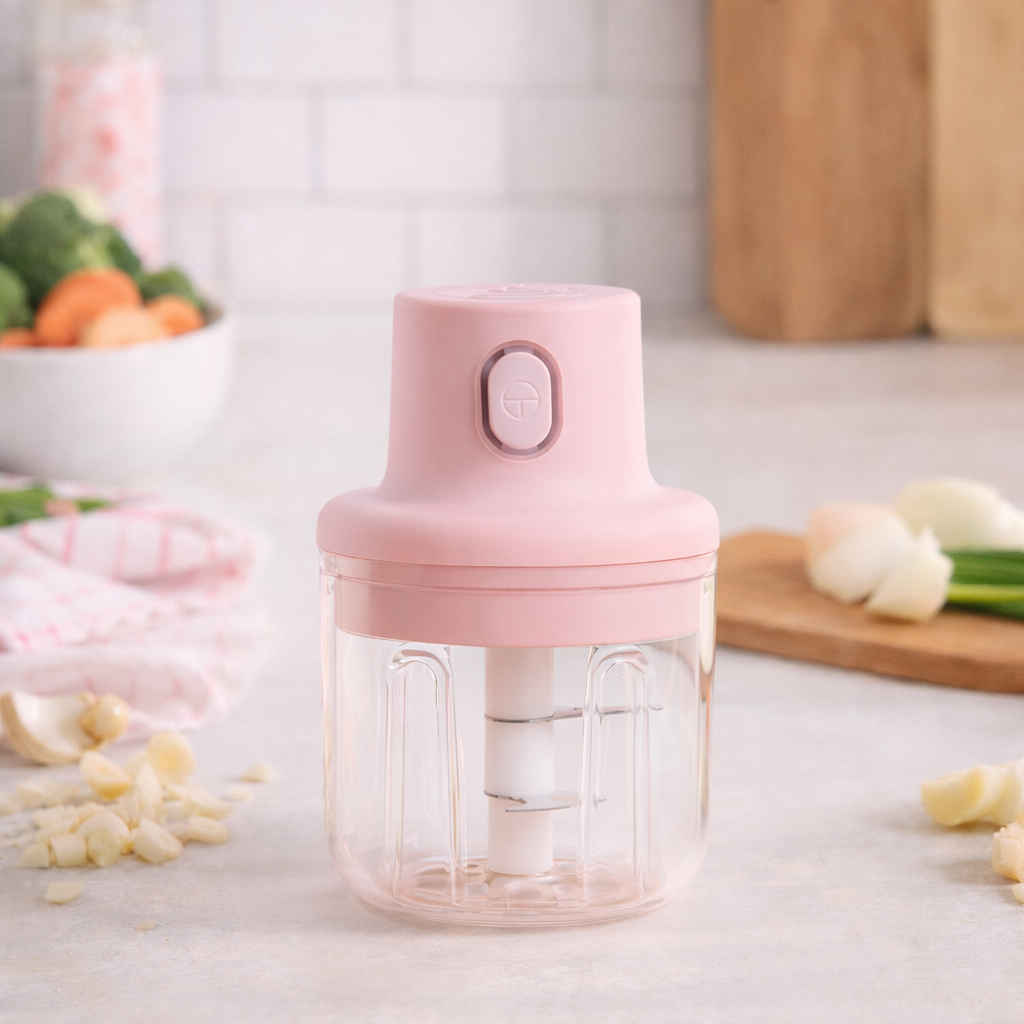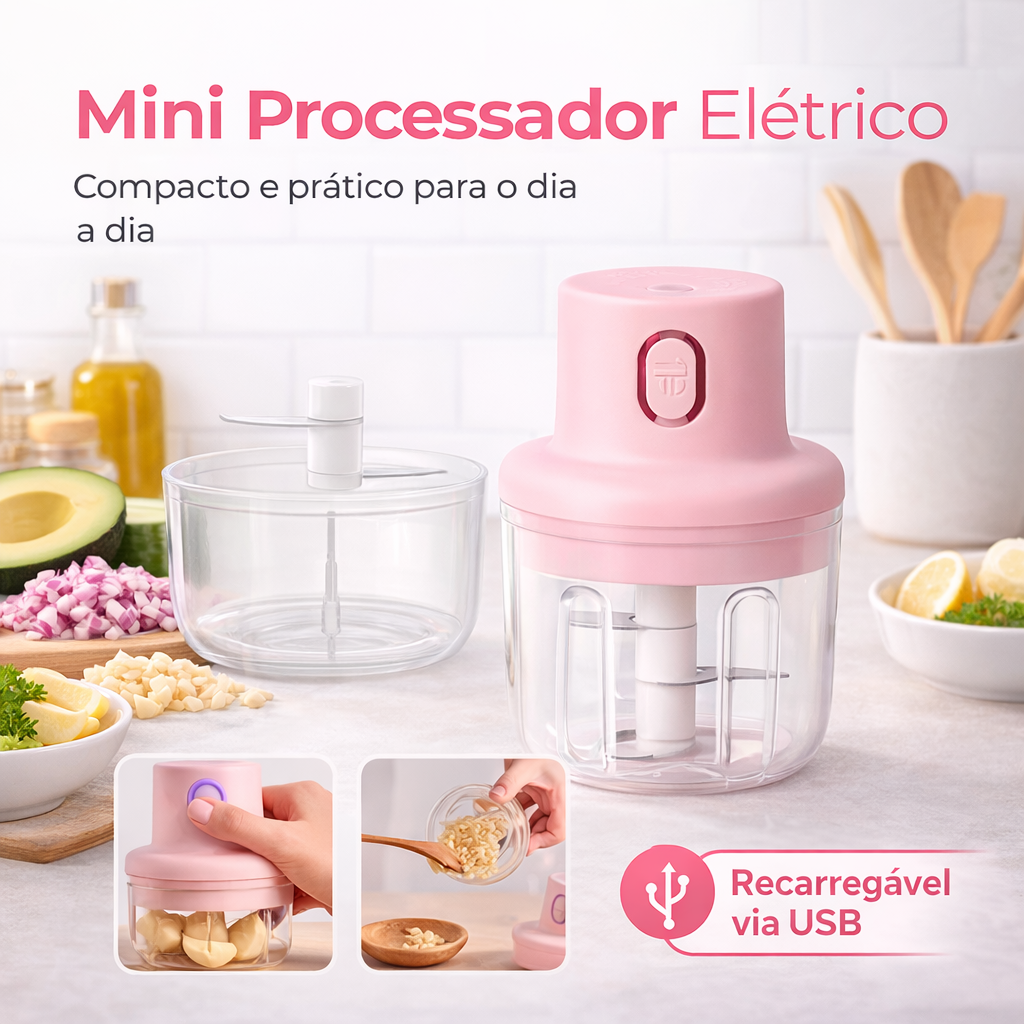 Praticidade diária: Mini Processador Elétrico USB agiliza o preparo de alimentos em segundos.