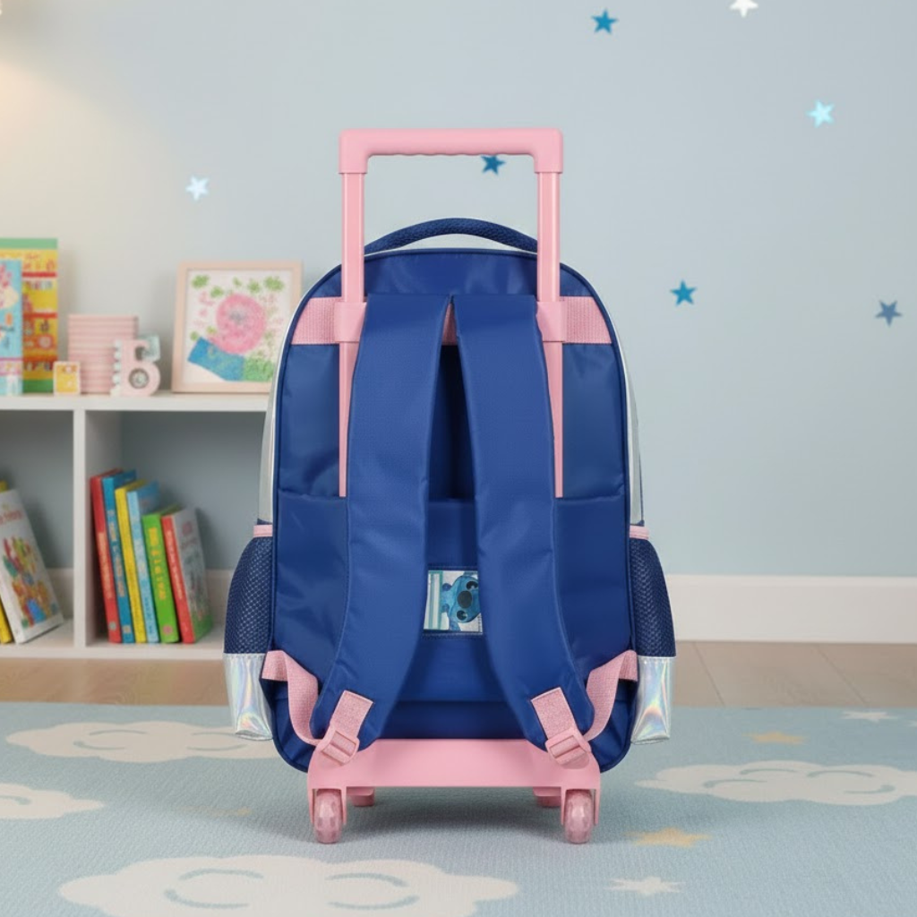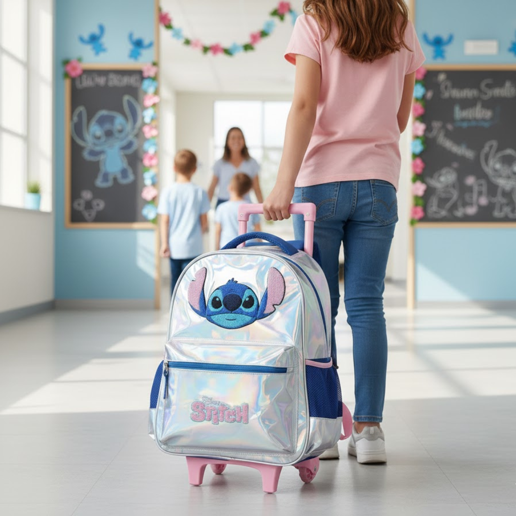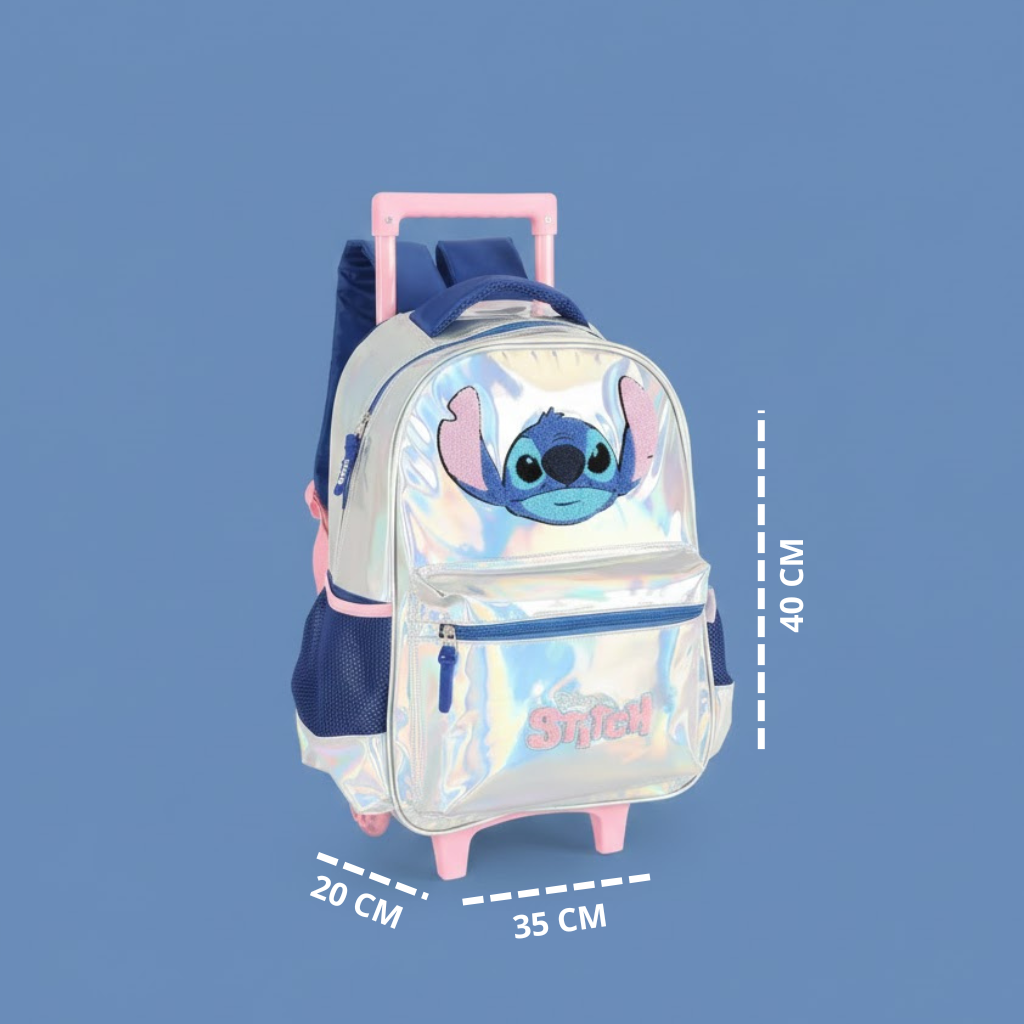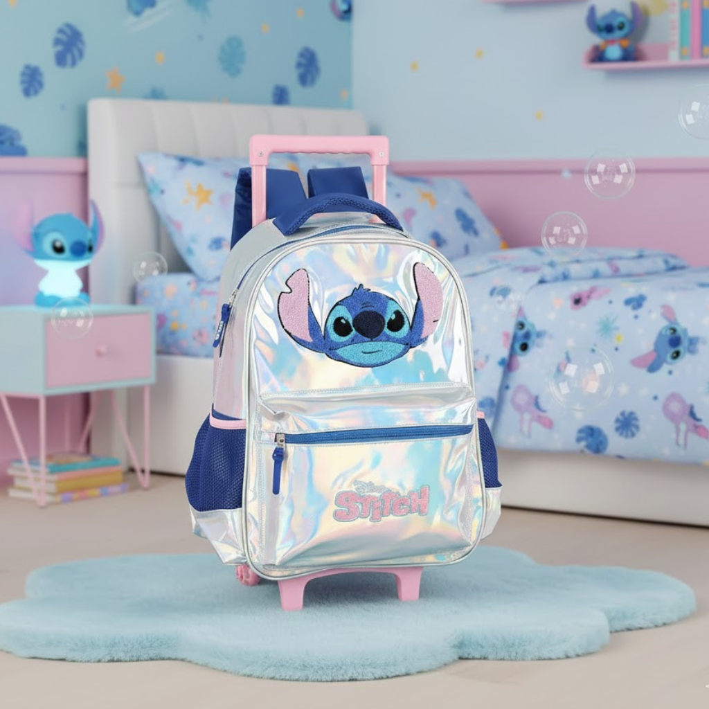 Mochila Stitch Prata com Rodinhas Escolar Infantil