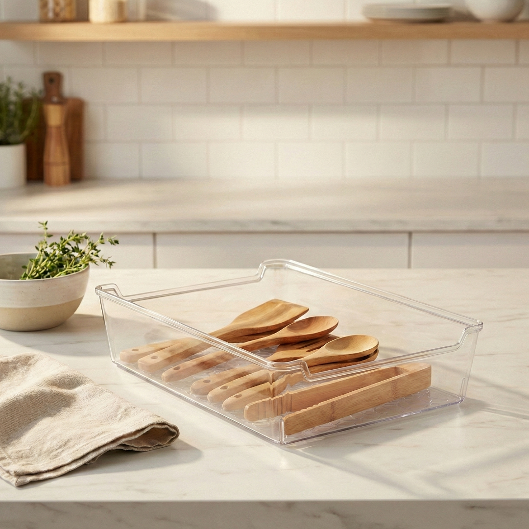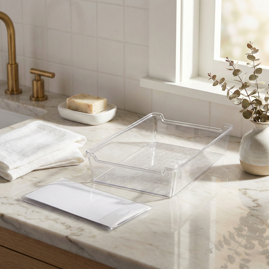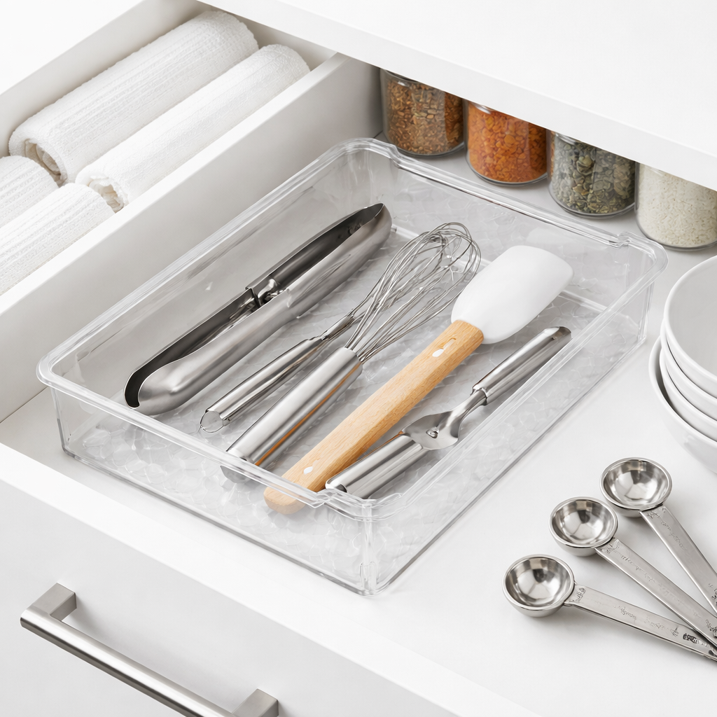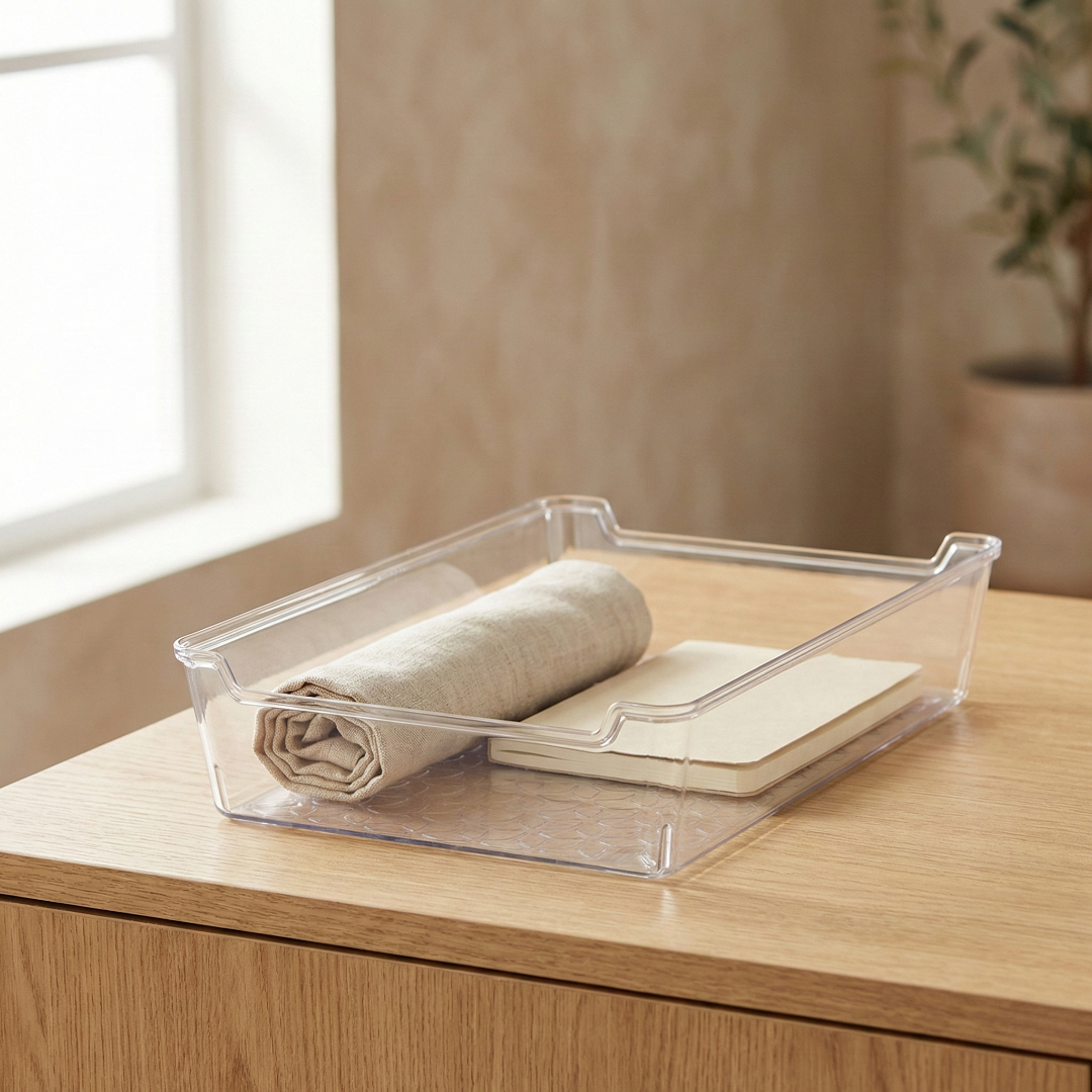 A total transparência do material facilita a visualização imediata do conteúdo, poupando tempo precioso na procura de objetos perdidos. Este organizador de gaveta transparente multiuso possui um design modular inteligente, permitindo composições personalizadas conforme o tamanho exato da sua gaveta ou necessidade. Fabricado em polipropileno resistente, ele oferece longa durabilidade e é extremamente fácil de higienizar, sendo perfeito para cozinhas, banheiros, quartos de maquiagem ou mesas de trabalho.