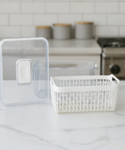 O Organizador de Geladeira com Cesto Coza proporciona uma conservação prática e eficiente, mantendo frutas, verduras e legumes frescos por mais tempo graças ao seu sistema com tampa que pode ser usada aberta para ventilação ou fechada para maior proteção. Organizador de Geladeira Transparente com Cesto o Feito em material resistente e transparente, facilita a visualização dos alimentos, enquanto o cesto interno permite a drenagem de líquidos, evitando umidade excessiva. Ideal para organizar e otimizar espaços na geladeira, é um recipiente versátil para o dia a dia.