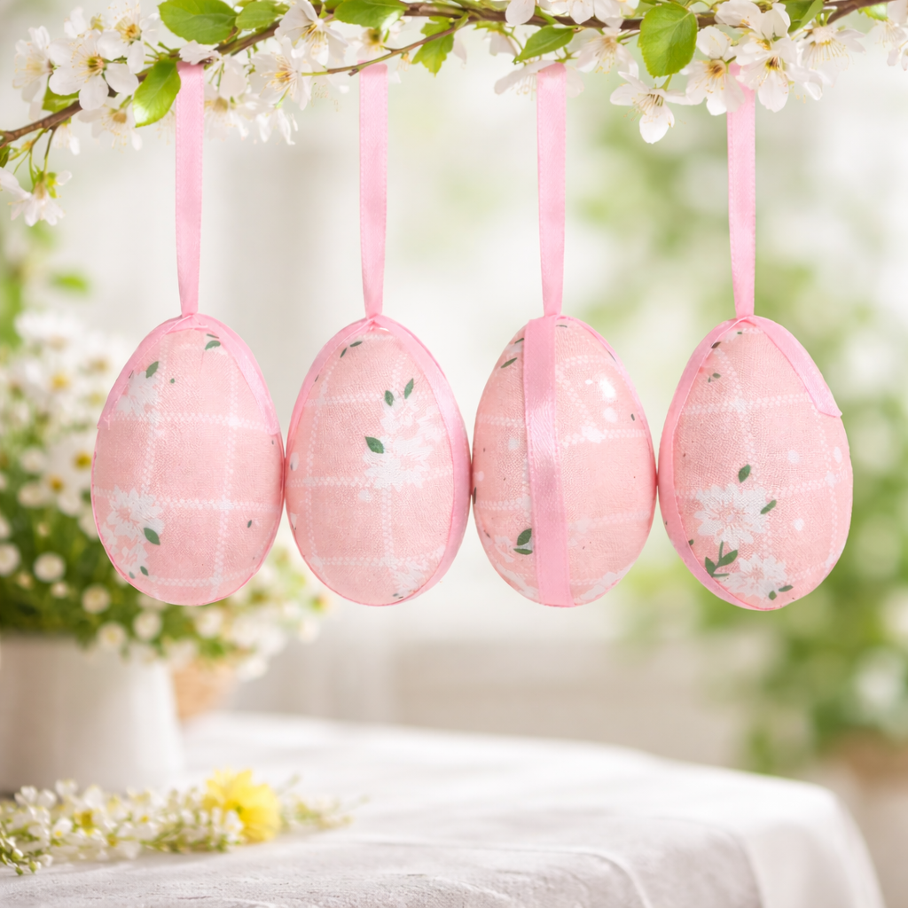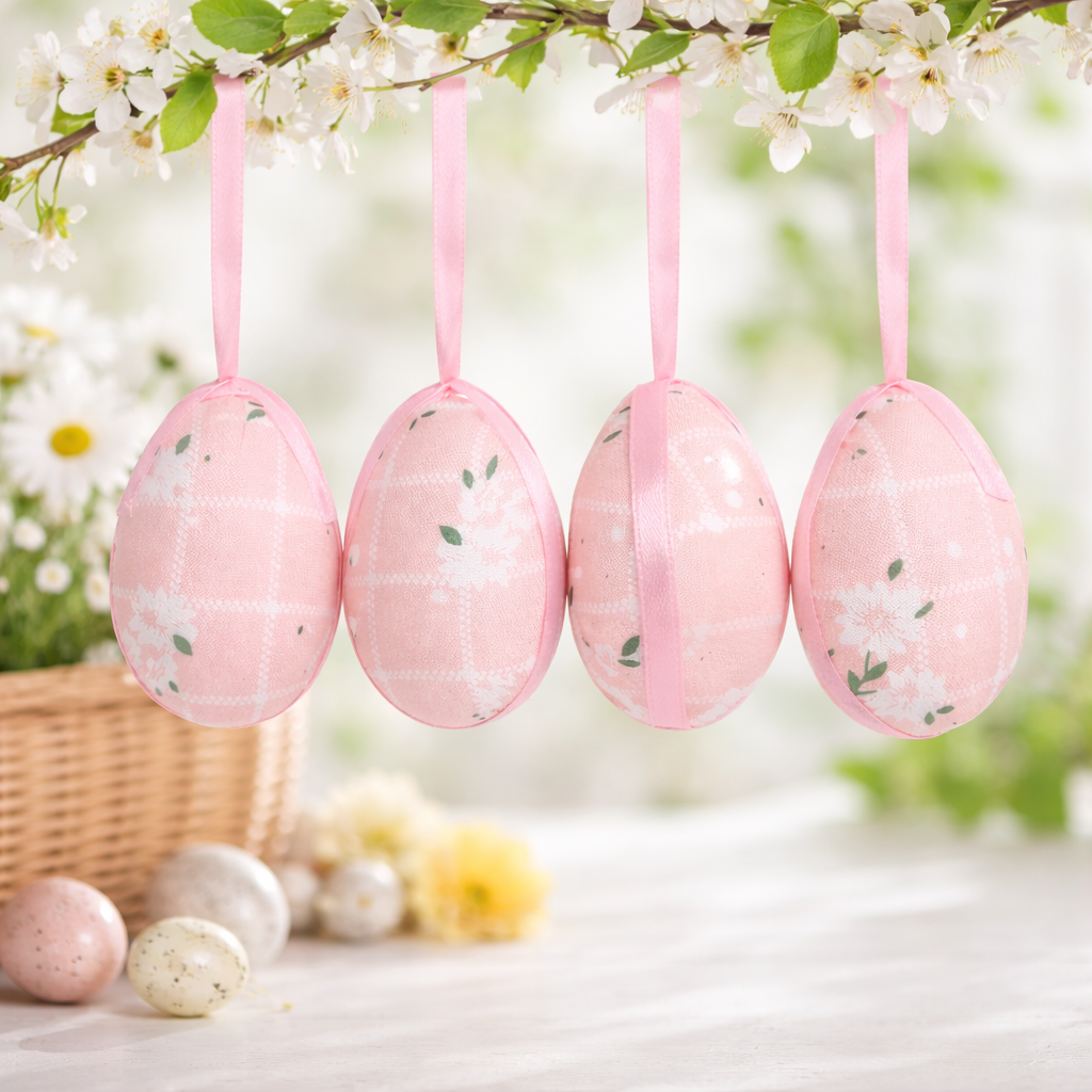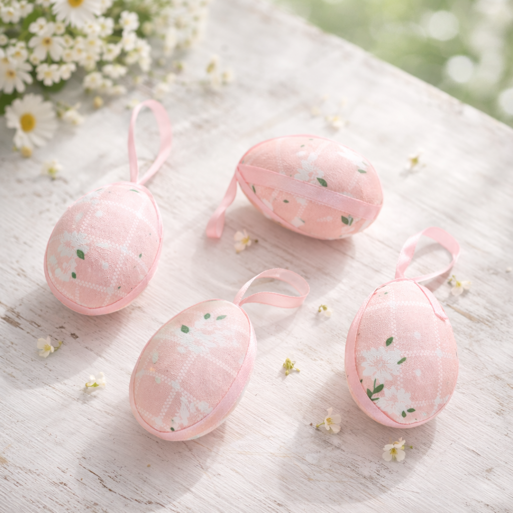 Design Floral Delicado: Ovo Decorativo de Páscoa Rosa com estampa suave que valoriza a decoração temática.