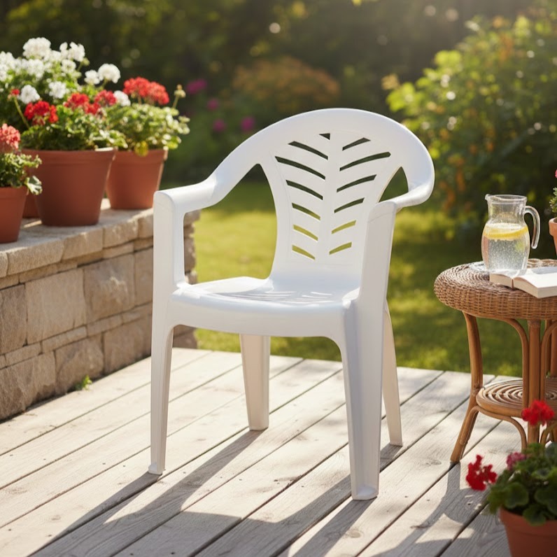 Fabricada em polipropileno de alta qualidade, a poltrona plástica possui estrutura monobloco robusta, preparada para suportar variações climáticas como sol e chuva. Seu acabamento branco traz leveza e versatilidade à decoração, combinando facilmente com diferentes estilos de ambientes internos e externos.