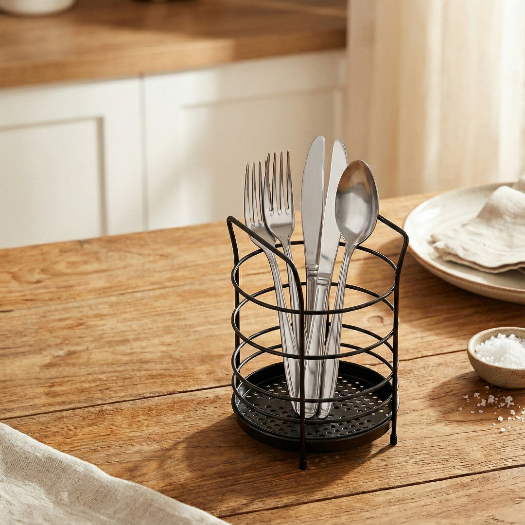 Porta Talheres Aramado com Fundo Plástico Linha Black STD