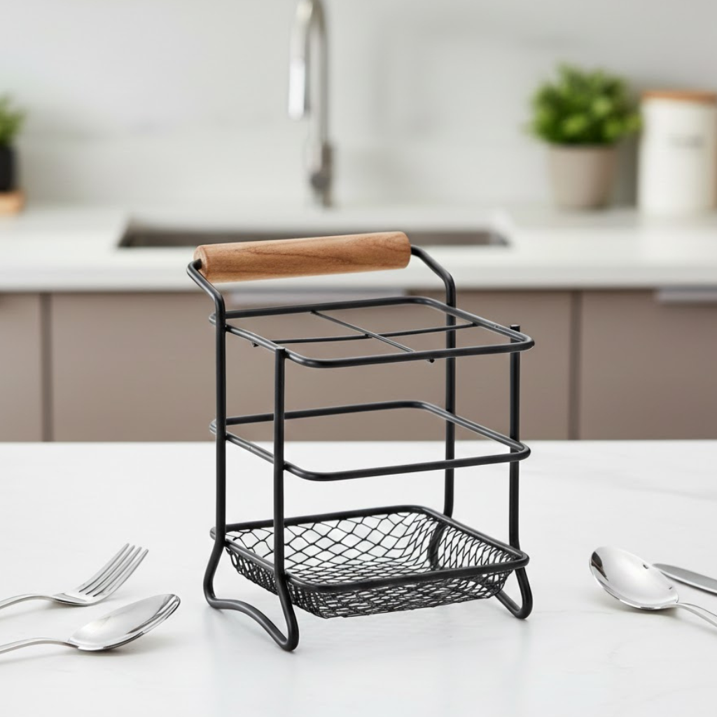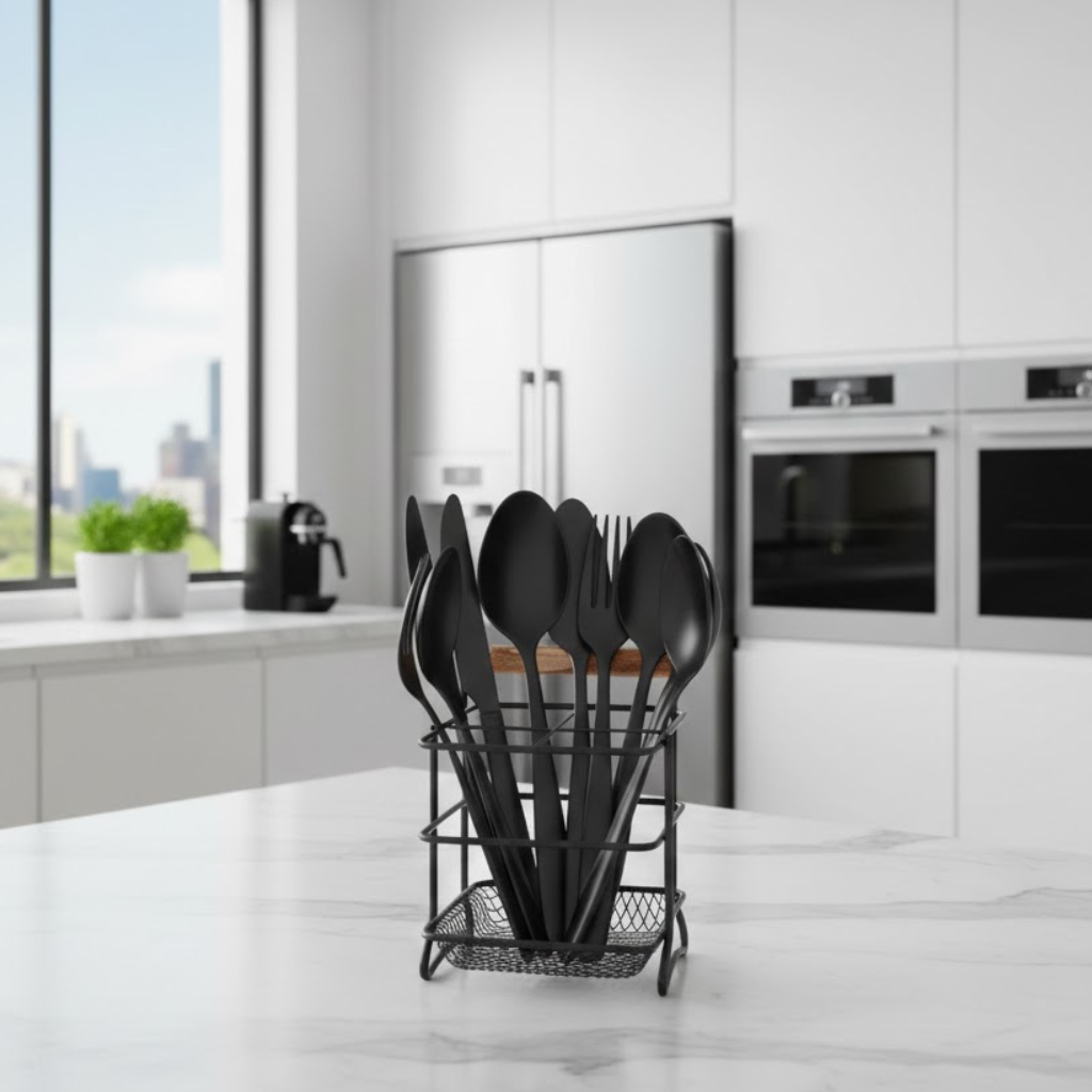 Solução Inteligente: O Porta Talheres Preto para Cozinha otimiza espaço e organização.
