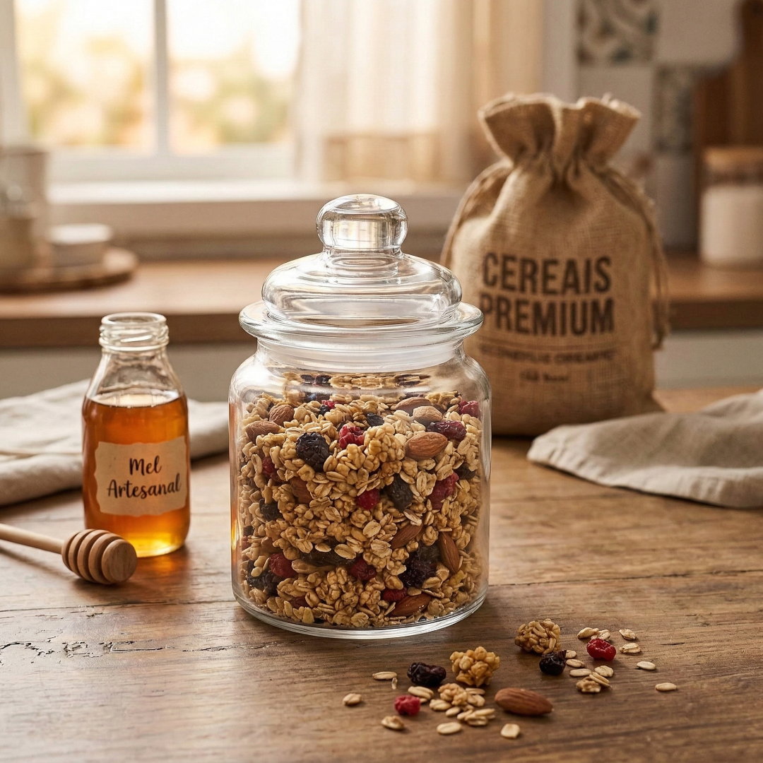 Como o Pote de Vidro com Tampa Lyor possui design compacto, você ganha espaço livre em armários. É um investimento sustentável, reforçando a durabilidade para o cotidiano, garantindo eficiência, brilho constante e vedação segura em todas as ocasiões de armazenamento.