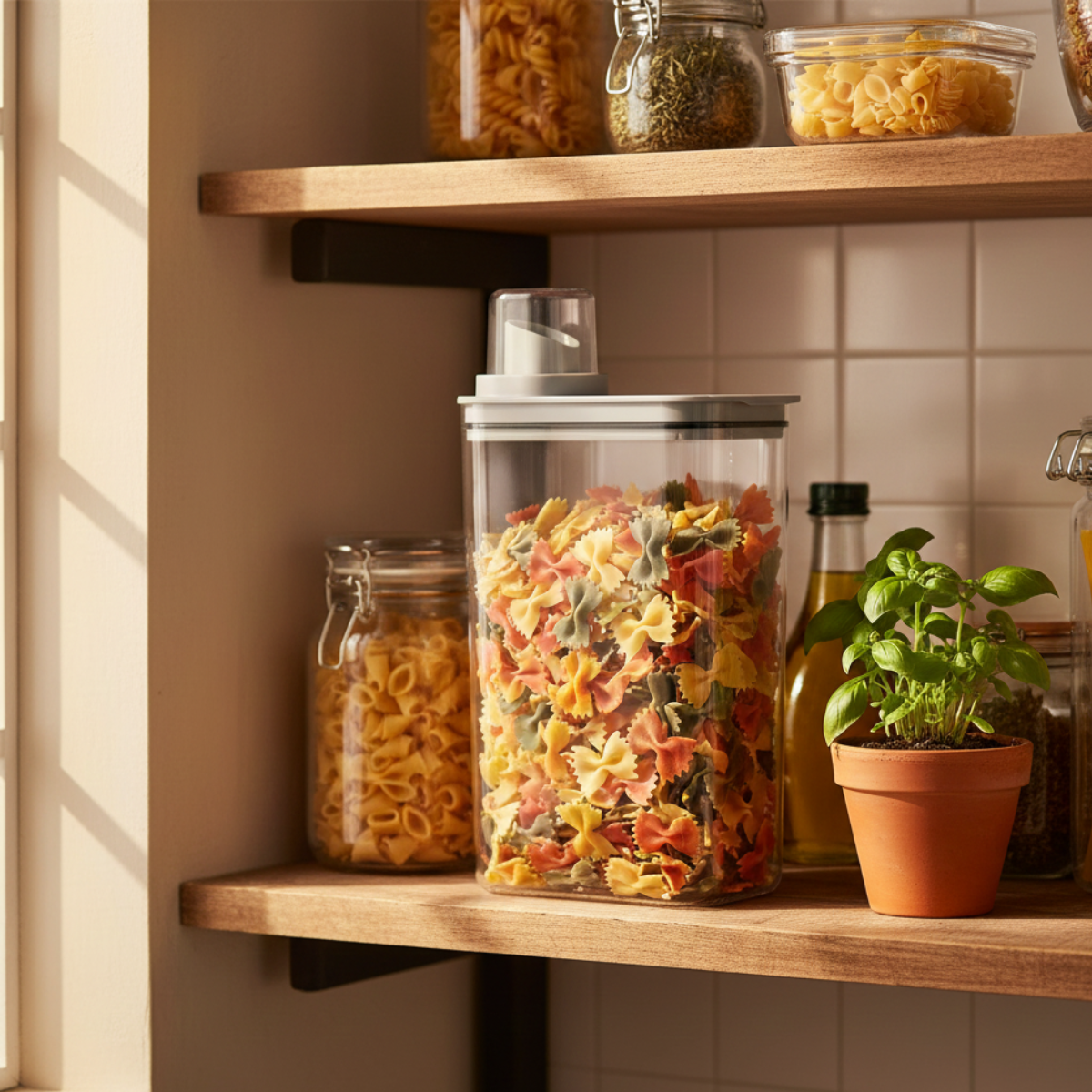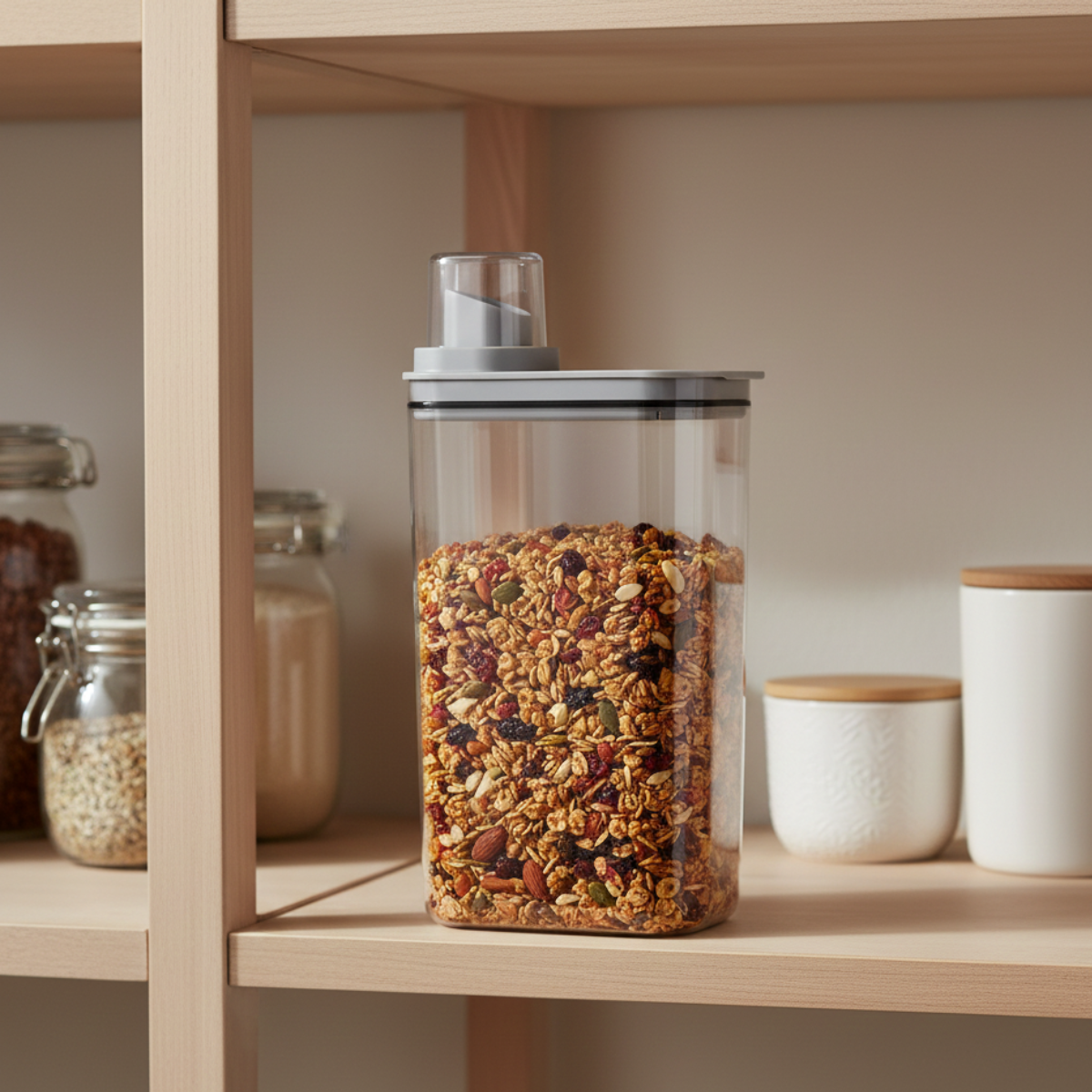 Capacidade Funcional: Ideal para armazenar diferentes tipos de mantimentos secos com organização.