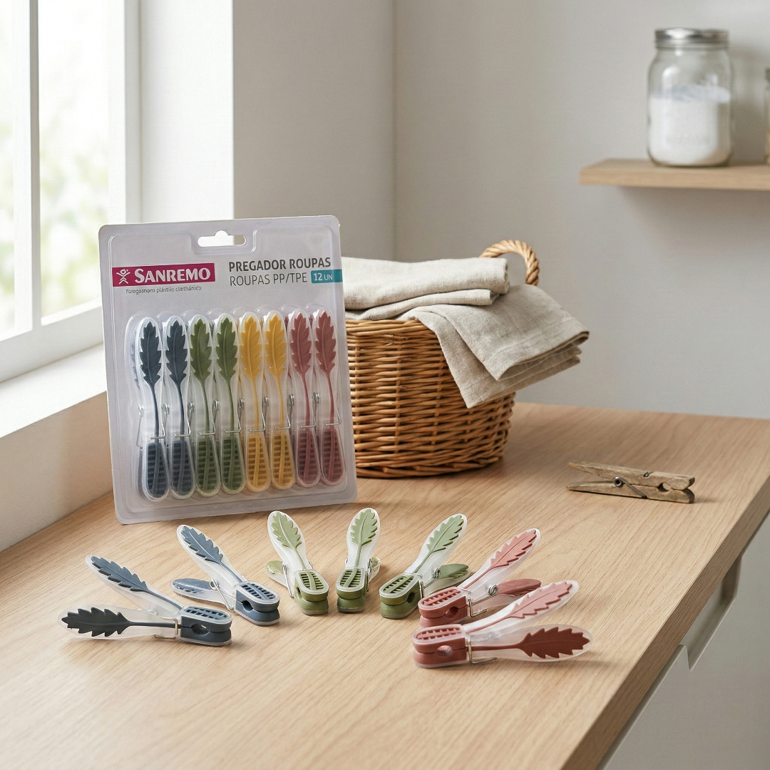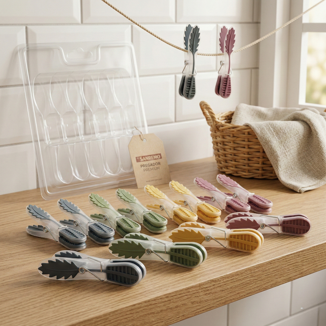 Este kit conta com a tecnologia PP/TPE, unindo a resistência do polipropileno ao toque suave do elastômero termoplástico. O Pregador roupas emborrachado Sanremo oferece uma pressão uniforme que segura firmemente as roupas sem criar aqueles vincos indesejados e difíceis de passar. É a solução perfeita para estender blusas finas, lingeries ou roupas de bebê, proporcionando uma aderência superior mesmo em condições de vento forte ou umidade constante durante o ano todo.