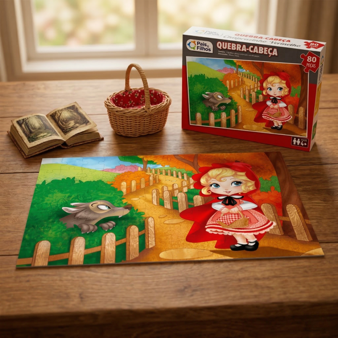 Montar Quebra-Cabeça Chapeuzinho Vermelho é um desafio na medida certa para crianças a partir de 4 anos de idade. A ilustração é vibrante e rica em detalhes, o que ajuda na identificação das partes e mantém o engajamento do início ao fim do processo. Por possuir encaixes precisos e o selo de segurança do INMETRO, os pais podem ter a tranquilidade de oferecer um produto seguro, resistente e que realmente contribui para o crescimento cognitivo e intelectual dos seus filhos.