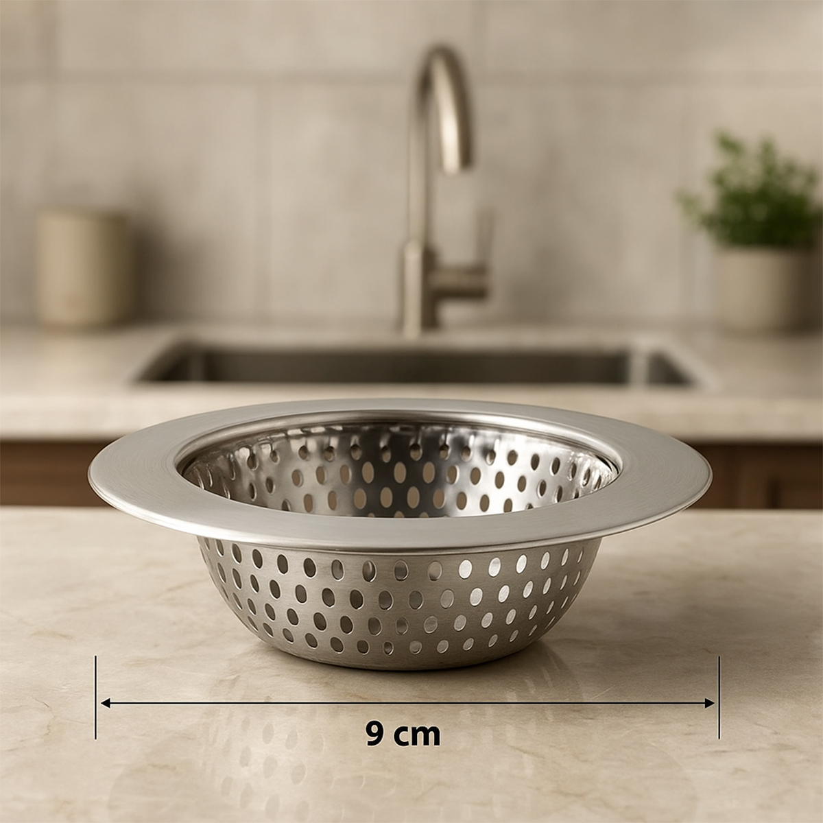 Medindo 5,4 cm de altura e 9 cm de diâmetro, o ralo se adapta facilmente à maioria das pias residenciais, oferecendo encaixe firme e seguro. Sua estrutura permite que a água escoe rapidamente, ao mesmo tempo em que retém resíduos sólidos, prevenindo entupimentos e mantendo o encanamento limpo por mais tempo;