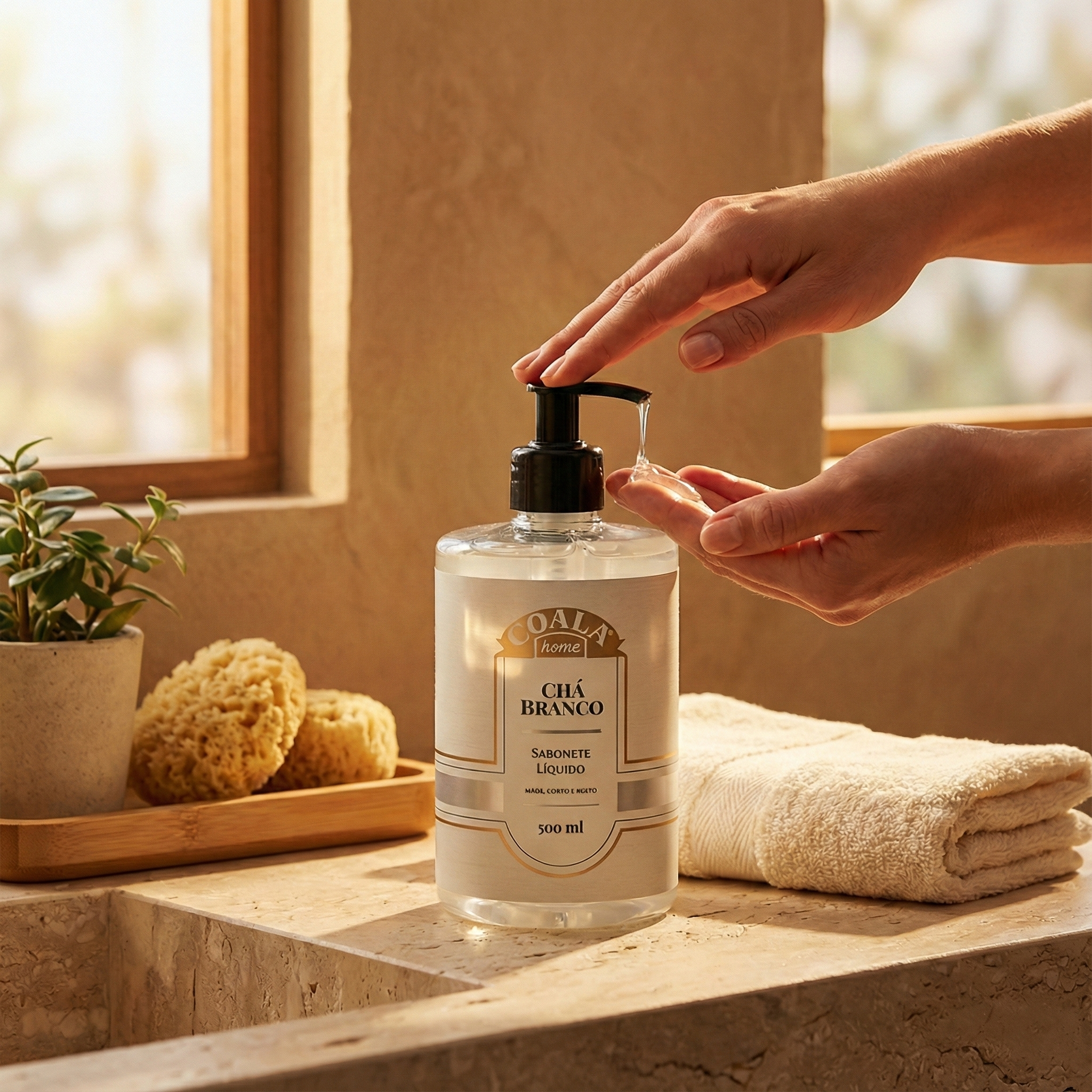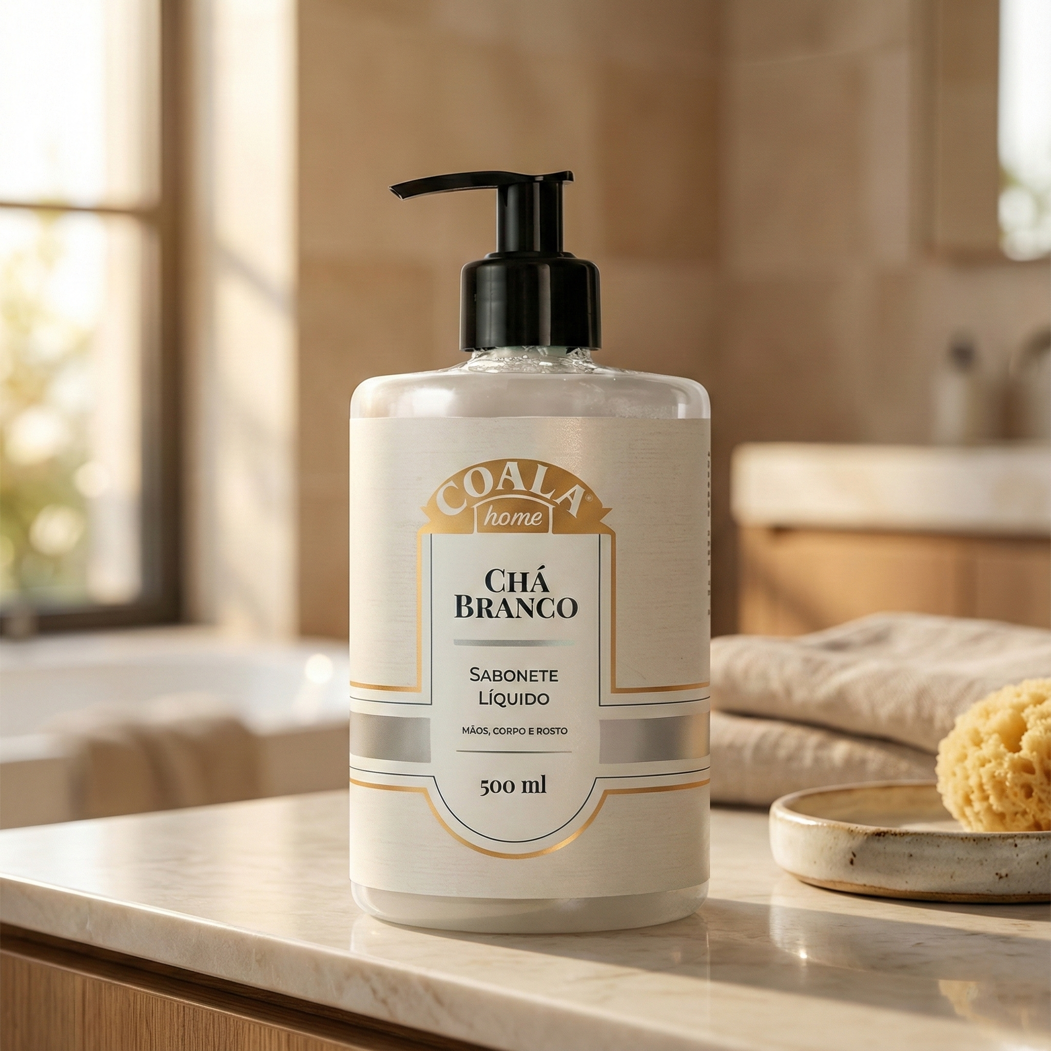 Ideal para uso no rosto, mãos e corpo, o sabonete líquido chá branco Coala proporciona uma sensação imediata de conforto, sendo seguro para todos os tipos de pele.
