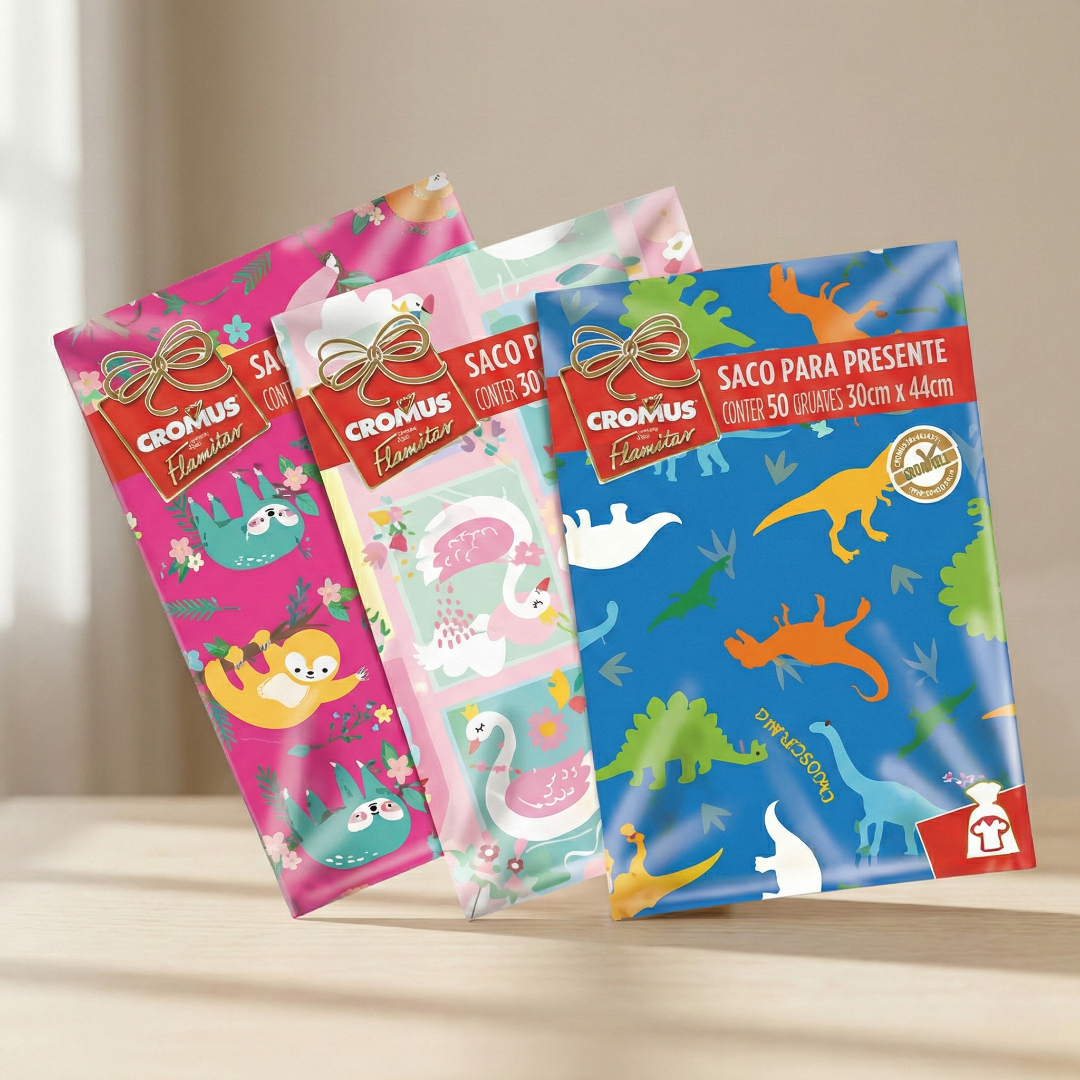 A qualidade reconhecida da Cromus está presente neste produto, oferecendo estampas vibrantes e atuais que conectam perfeitamente com o gosto exigente do público infanto-juvenil. O material plástico é robusto, evitando rasgos indesejados durante o transporte e protegendo o conteúdo com segurança total. Escolher este saco de presente 30×44 do Kit Auto Serviço facilita drasticamente a rotina de lojistas e pais, pois basta colocar o item dentro e fechar para ter um pacote perfeito instantaneamente.