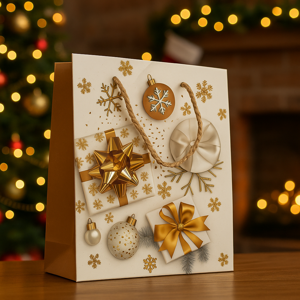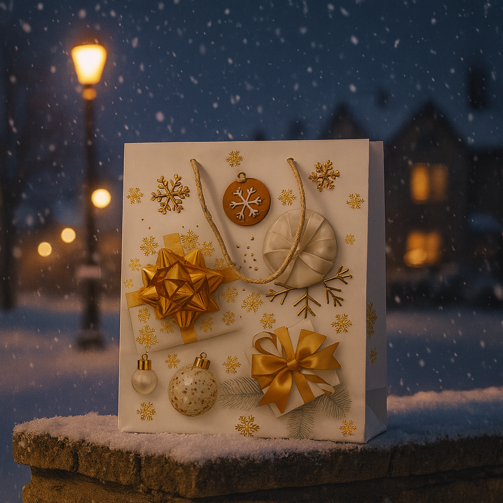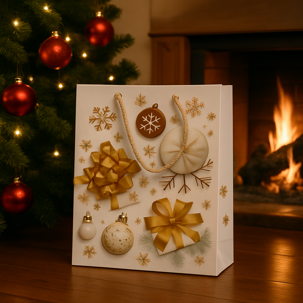 Sacola de Papel Decorada de Natal Branca 18x23cm