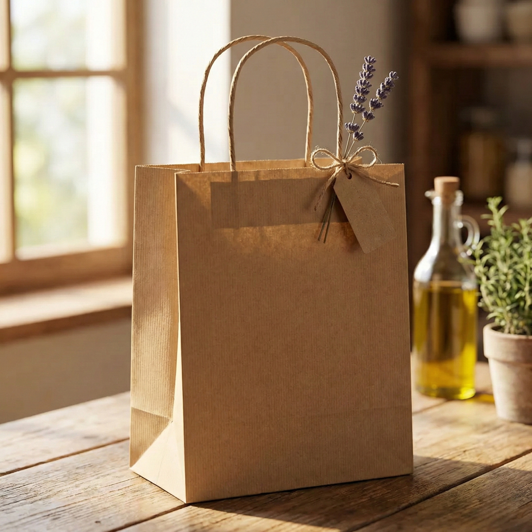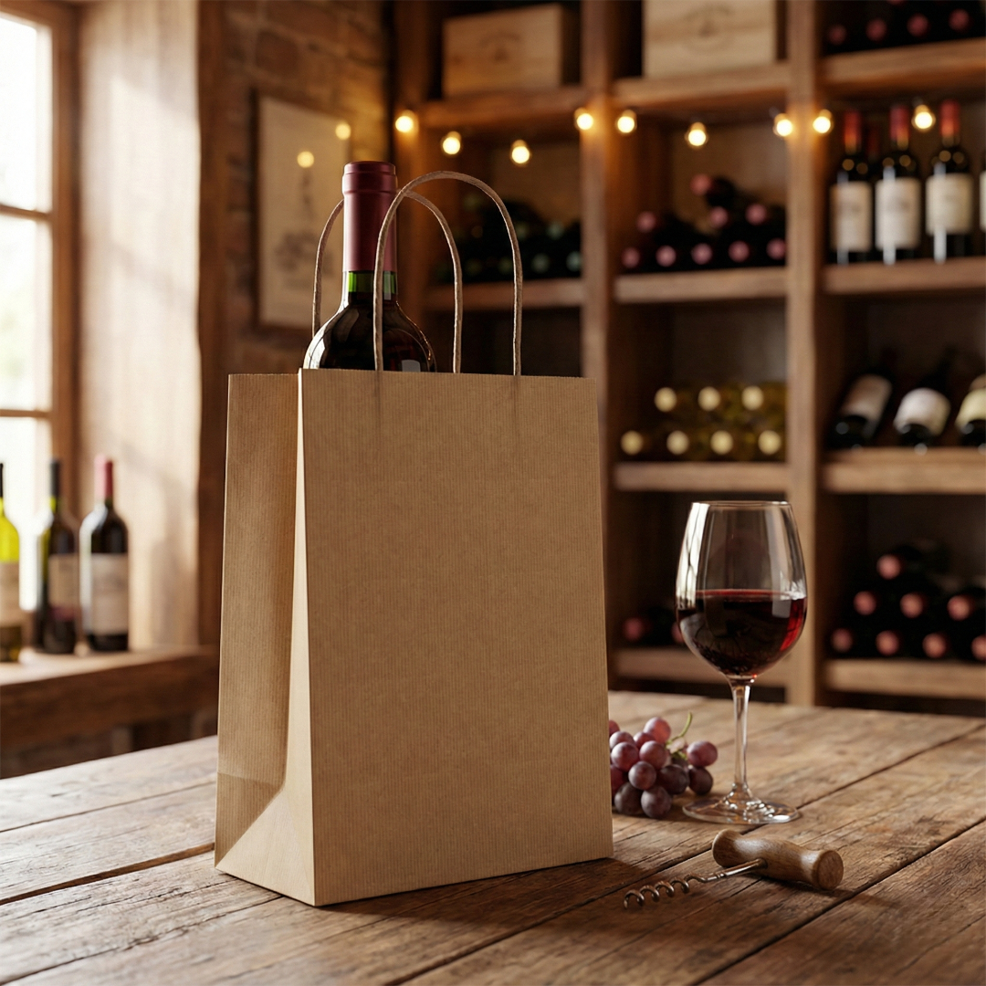 Desenvolvida especificamente para suportar o peso de garrafas de vinho, espumante ou licores, esta sacola é feita de material robusto e confiável. A sacola papel kraft garrafa possui um visual neutro e rústico que permite personalizações com laços ou etiquetas, ou o uso em sua forma natural minimalista. Suas alças são reforçadas para garantir um transporte seguro do presente. É a escolha ideal para lojistas que buscam qualidade ou para quem deseja entregar uma lembrança com acabamento impecável.