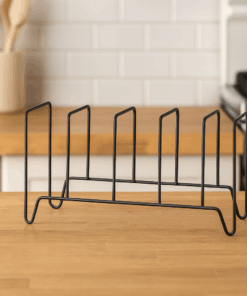 O suporte cromado mantém suas travessas sempre acessíveis e bem acomodadas.