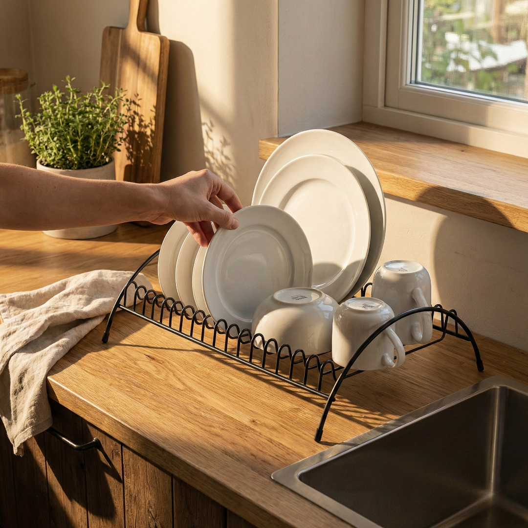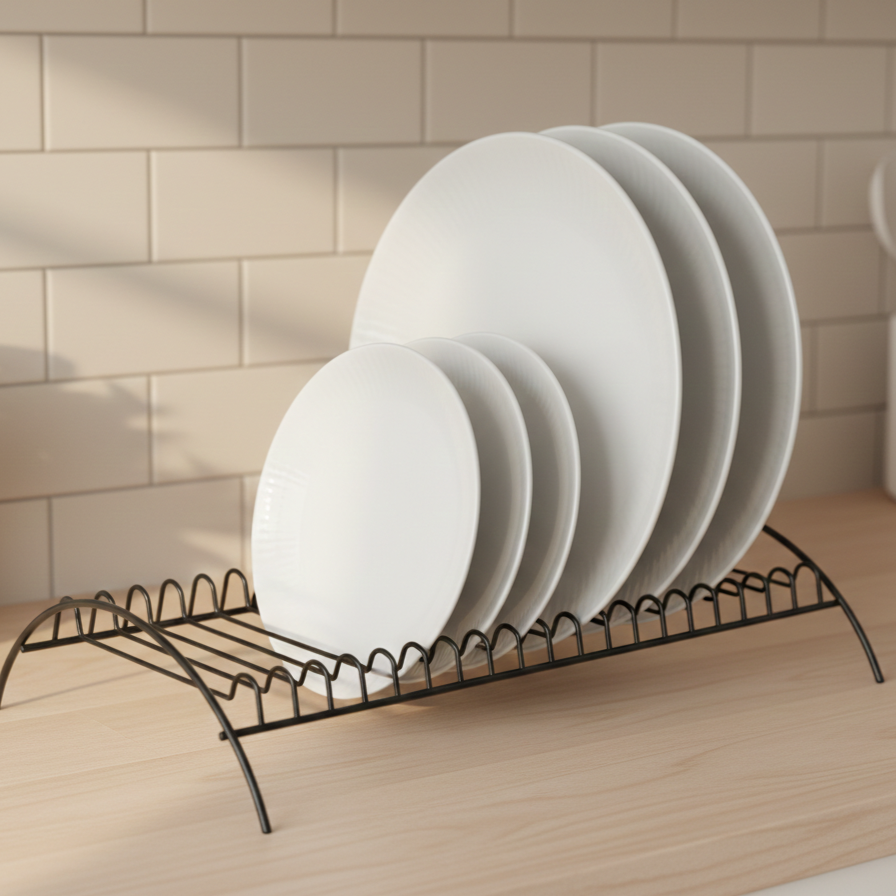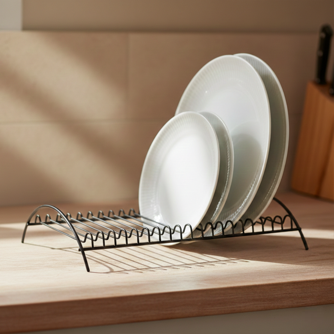 Maximize o espaço dos seus armários e mantenha suas louças sempre acessíveis e seguras com o funcional suporte organizador de pratos da Linha Black, a solução perfeita para quem busca organização vertical com um toque de modernidade industrial.