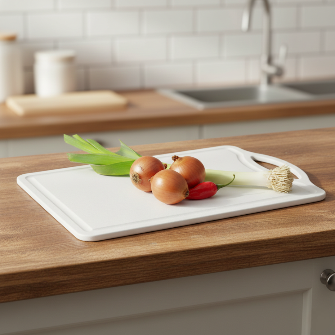 Prepare suas receitas favoritas com total higiene e praticidade utilizando a Tábua de Corte Grande de Plástico Sanremo. Com uma superfície ampla e generosa, ela oferece o espaço ideal para manusear carnes, legumes, verduras e frutas com conforto, evitando que os alimentos caiam na bancada e facilitando todo o processo de picar e fatiar no dia a dia da sua cozinha.