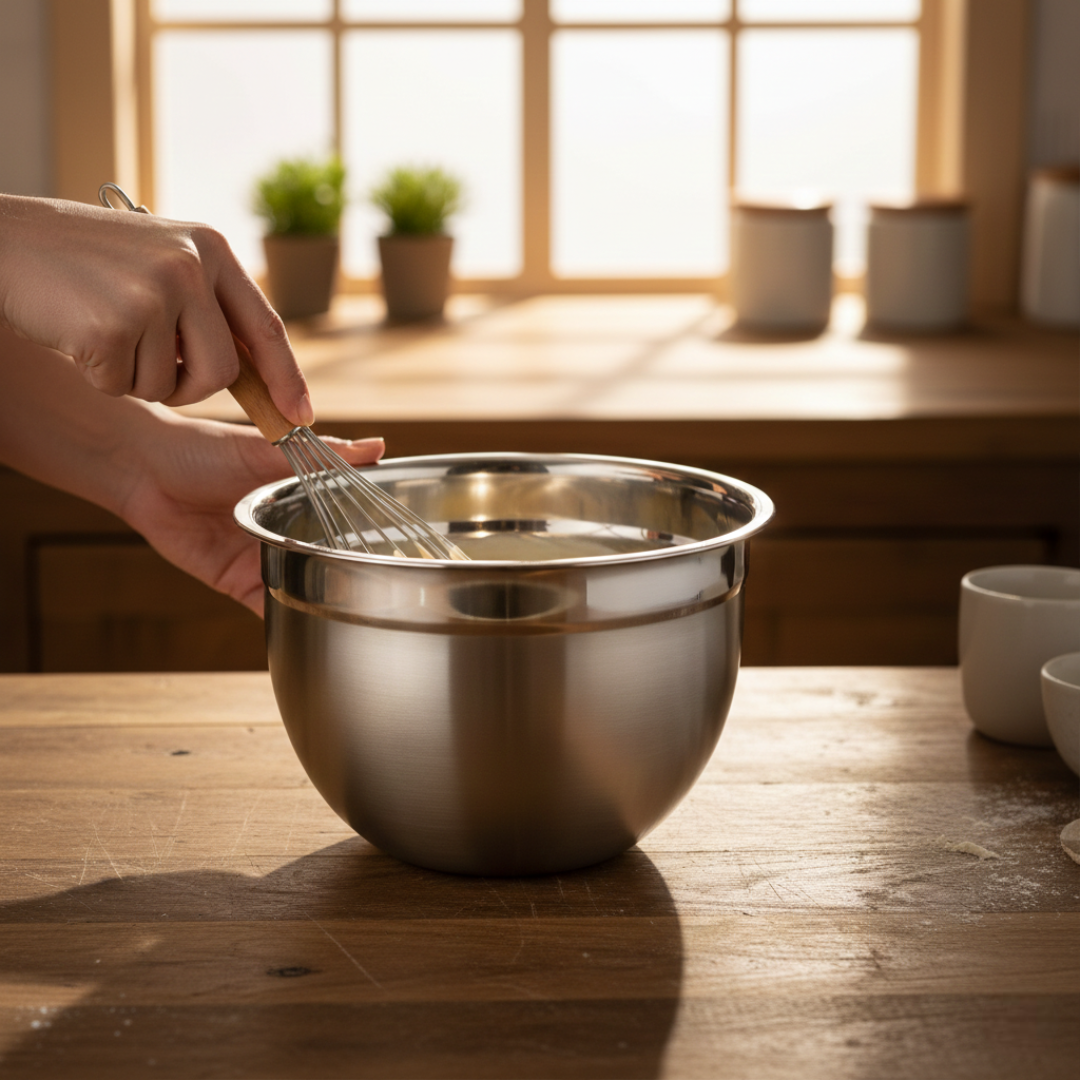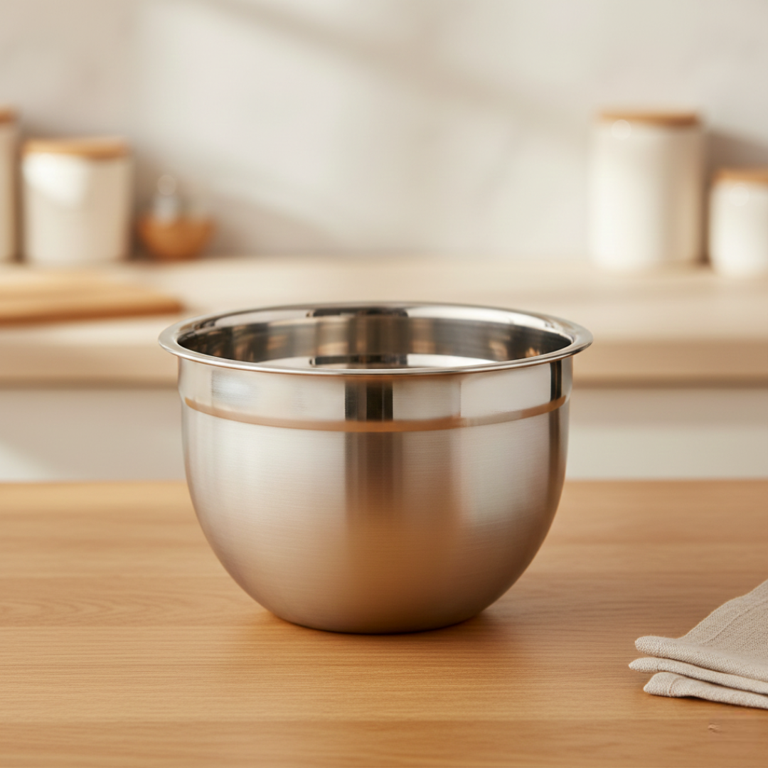Ter este mixing bowl inox na sua bancada assegura agilidade no preparo de receitas complexas ou simples do dia a dia. Sua base estável e diâmetro amplo facilitam o manuseio de batedores manuais e espátulas, tornando o processo de cozinhar muito mais produtivo e prazeroso. É a peça durável e fundamental para quem valoriza organização e qualidade profissional em cada detalhe da gastronomia doméstica.