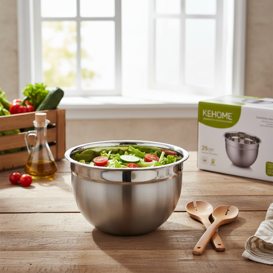 O mixing bowl aço inox de 28cm é o aliado indispensável para quem busca elevar o nível de suas produções culinárias em 2025. Fabricada pela Kehome, esta tigela profissional combina durabilidade e praticidade, sendo ideal para bater massas, preparar marinadas ou servir saladas com total higiene e elegância em sua cozinha hoje.