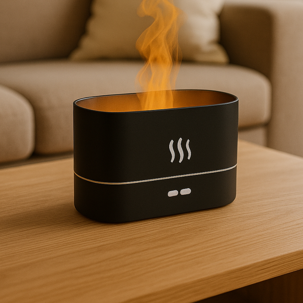 Umidificador de Ar com Efeito de Chamas é a escolha ideal para quem busca um ambiente mais aconchegante, combinando aromaterapia, iluminação quente e vaporização eficiente. Este Difuso cria um visual realista de chamas enquanto umedece o ar, ajudando a aliviar ressecamento, melhorar a respiração e proporcionar sensação de relaxamento. Seu reservatório generoso, operação silenciosa e design moderno o tornam perfeito para salas, quartos e escritórios, oferecendo bem-estar e estilo em um único produto.