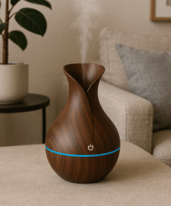 Seu formato de vaso e acabamento amadeirado combinam facilmente com qualquer tipo de decoração — do estilo rústico ao contemporâneo — adicionando um toque de elegância e naturalidade ao espaço. Leve e fácil de manusear, basta ligar com um simples toque para desfrutar de um ar mais puro e perfumado.