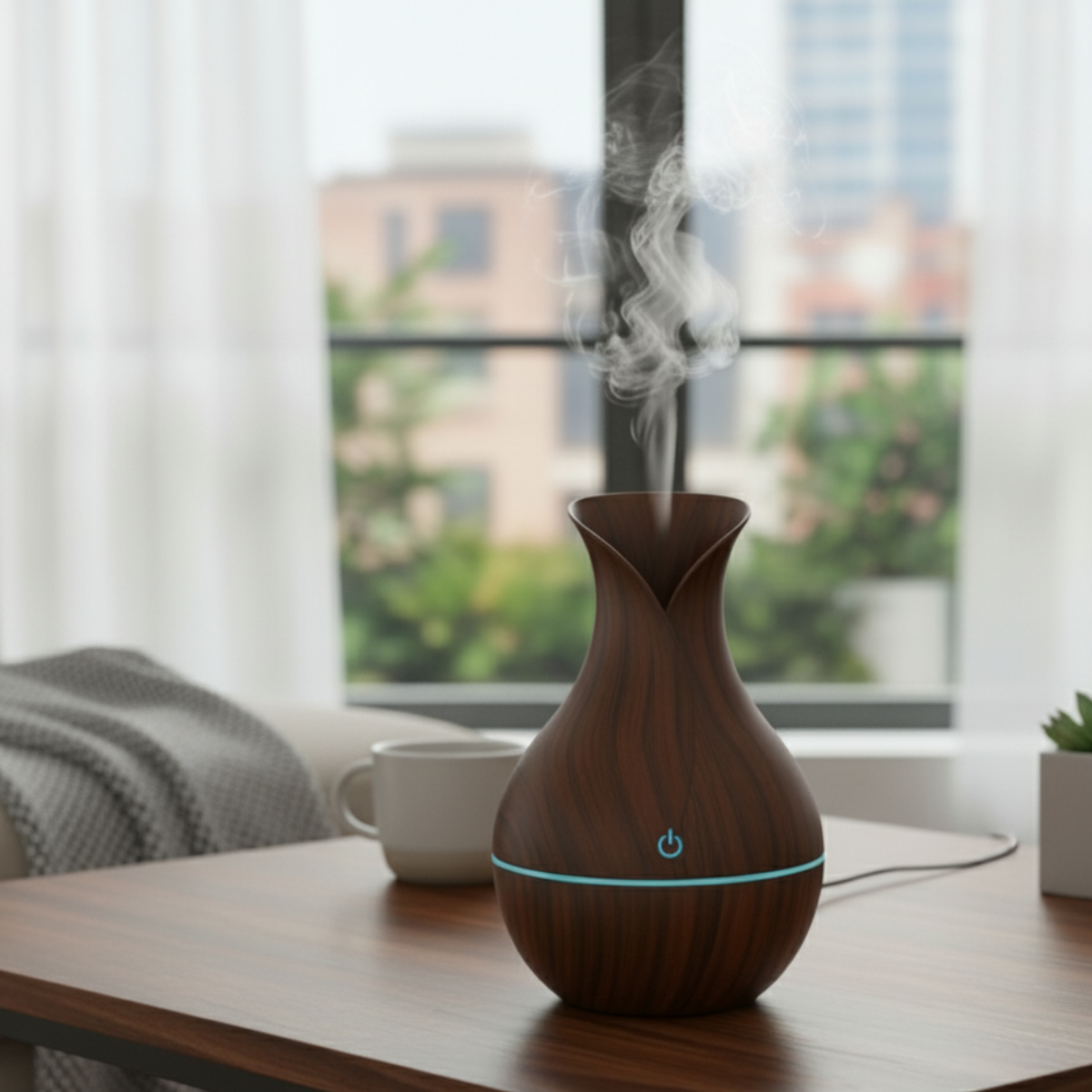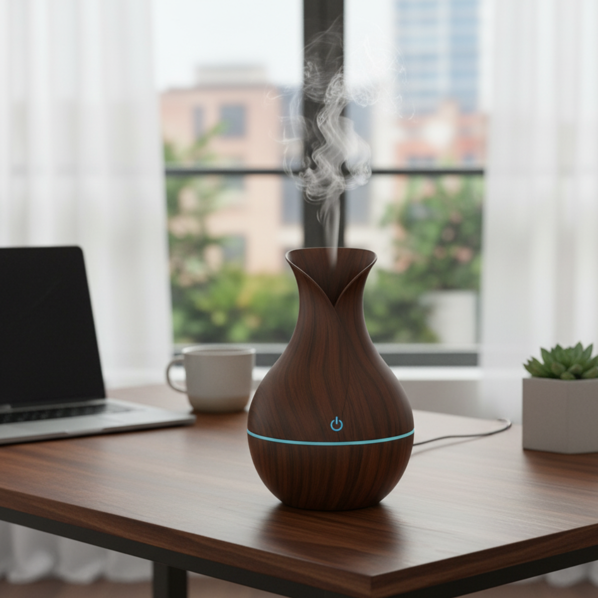 O Umidificador de Ar Formato Vaso é a solução ideal para quem busca um ambiente mais agradável, equilibrado e visualmente charmoso. Com capacidade de 200ml, ele umidifica o ar, auxilia no bem-estar respiratório e pode ser usado com essências para aromaterapia. Seu material plástico resistente garante durabilidade, enquanto a luz colorida embutida cria um clima acolhedor e relaxante em quartos, salas, escritórios e espaços de descanso, proporcionando maior conforto e decoração moderna. Difuso