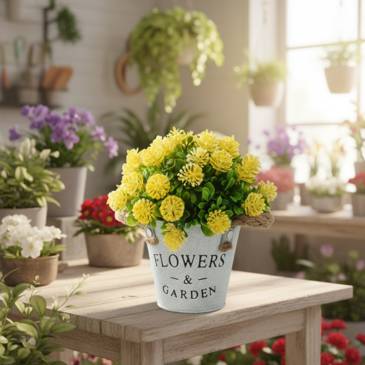 Vaso Decorativo com Flores Permanentes, ideal para quem busca praticidade e beleza, oferece um toque natural em qualquer espaço graças às suas plantas de plástico realistas combinadas com uma estrutura de ferro resistente. Seu tamanho compacto de 10x10cm permite decorar mesas, prateleiras, estantes e ambientes corporativos, proporcionando charme sem a necessidade de cuidados constantes. Perfeito para quem deseja elegância duradoura e versatilidade decorativa em qualquer estilo de ambiente.